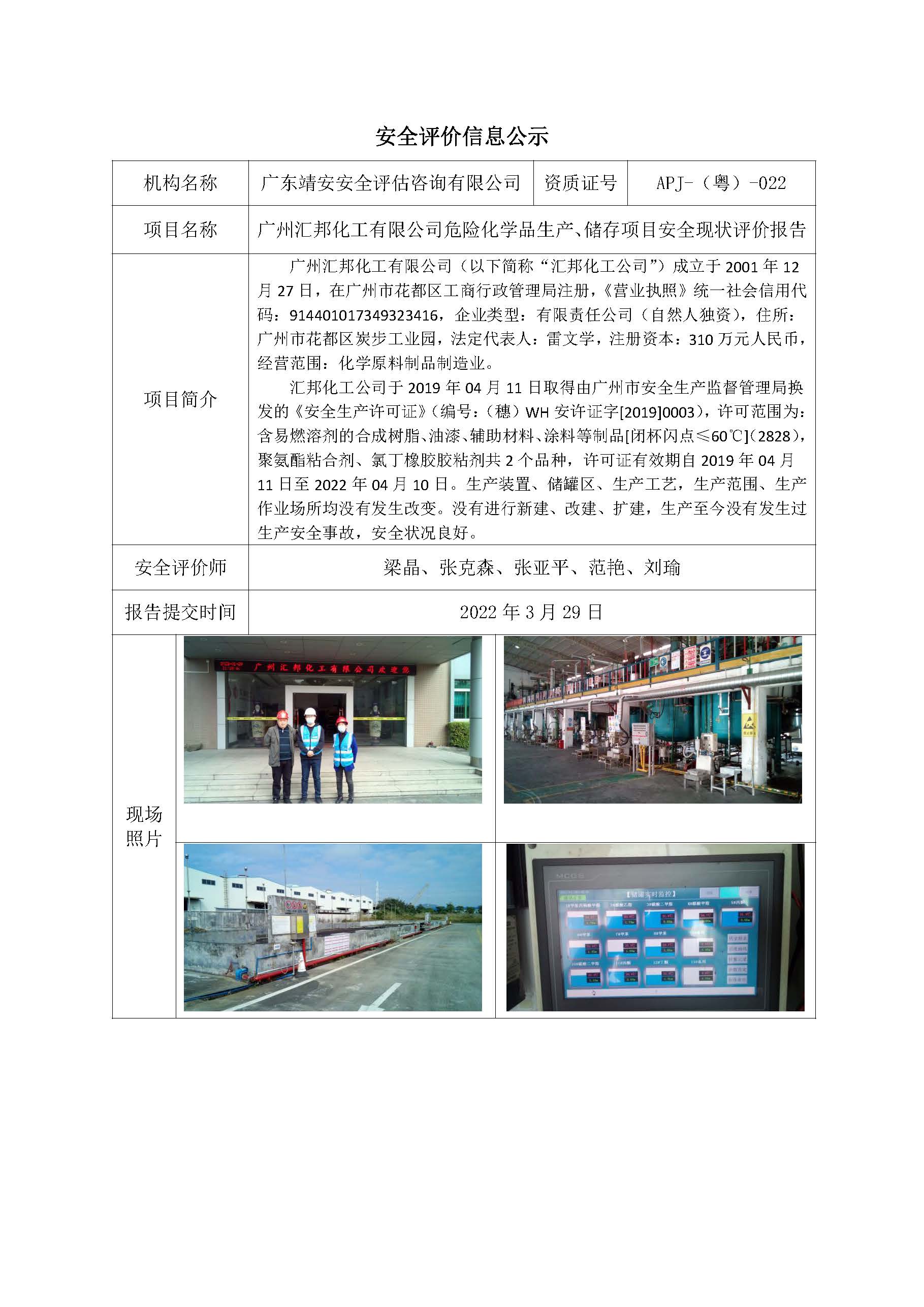 广州汇邦化工有限公司危险化学品生产、储存项目安全现状评价报告